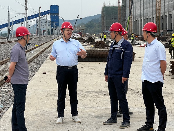 正值中午时分,唐志强不顾天气炎热,直奔施工现场。他实地查看正在进行库顶上部结构施工的装车仓,对滑模外观质量给予肯定,针对后续工程,强调要细化节点、加快施工,避免前紧后松问题。装车仓周边有多个转载点框架,结合这些框架“又高又瘦”的特点,唐志强反复叮嘱项目部注意施工安全,要求重点做好操作面的安全防护,并从这类工程的承接策划、成本测算等方面与大家进行交流探讨。项目施工区域面积大、房号分散,唐志强边走边看、边看边问、边问边指导,“汽车受煤坑什么时间完工?”“基坑防护喷浆是打锚杆吗?”……从方案论证、安全防护、施工组织等方面有重点地进行指导。贮焦槽方仓滑模已经结束,唐志强与同一现场其他单位的方仓滑模进行对比,充分肯定了项目部在质量管控上的成果。唐志强进一步询问贮焦槽剩余工作内容,了解到库顶板施工有独特之处,需要先安装贝雷架,在贝雷架上面搭设承重架体后再施工库顶板,他叮嘱项目经理务必做好方案论证,保证安全施工。在巡查完1#筛焦楼和3#、4#转运站后,结合这些高框架多层不设顶板的结构特点,唐志强从周转工具占用量大的角度分析,强调要多个子项统筹推进,科学合理组织施工,千方百计加快进度,有效降低成本。